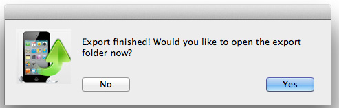 If you checked the box of "Show export finished message box" before the transfer process, then there will be a small window popping up to show you export finished and also aks if you would like to open the export folder directly. Just choose as your needs.