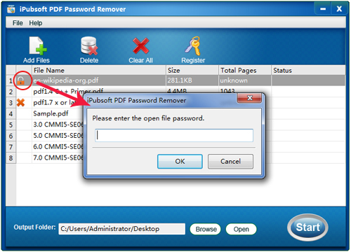 As we all know, PDF is the most widely used format in both commercial and private use. Sometimes PDFs are protected by password for protect documents from opening, copying, printing, editing, and so on. iPubsoft PDF Password Remover is just the needed application which can remove user/open password (Situation1), and crack owner password (Situation 2), easily in a few seconds. Following are the detailed steps to unlock password protected PDF documents.